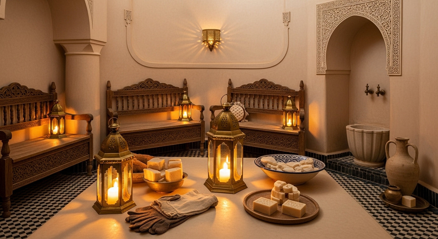 Immerse yourself in traditional Moroccan wellness rituals. Discover black soap, kessa gloves,...